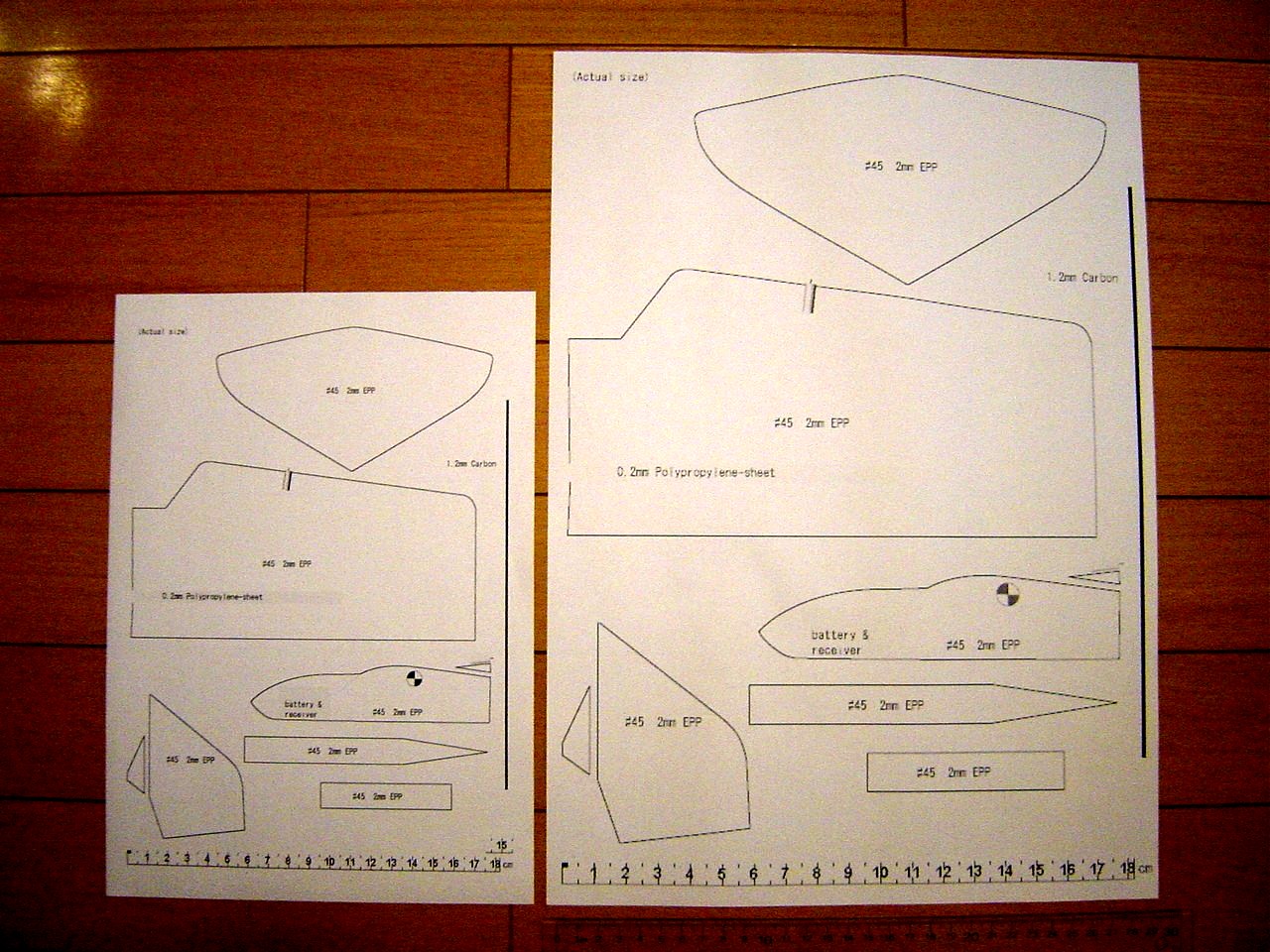 【 EPP1号機の製作開始!】 スカイタウンよりEPPをまとめて注文したので、何から作ろうかなぁ〜っと考えてて まずは、信頼と実績のある(どっかのCMみたい(*^_^*))ぷちトレーナーのミニタイプを製作 してみようと思います。 特になんかあったと言うわけでなく、近所の公園で飛ばすにはもう少し小さいのがいいかなぁ〜 っと思ったのと、1号機は飛ぶ飛行機がいいなぁ〜っと考えたからです。 ブログにもちょっと記事があります (*^_^*) 現物のぷちトレーナーを実測して縮小しようかと思ったのですが、RC飛行機実験工房の ページにマイクロぷちトレーナーの図面が公開されてたのを思い出して、それを利用させてもらう 事にしました。(^o^) まずは、拡大コピーからスタート!(A4→A3へ拡大コピー) |
