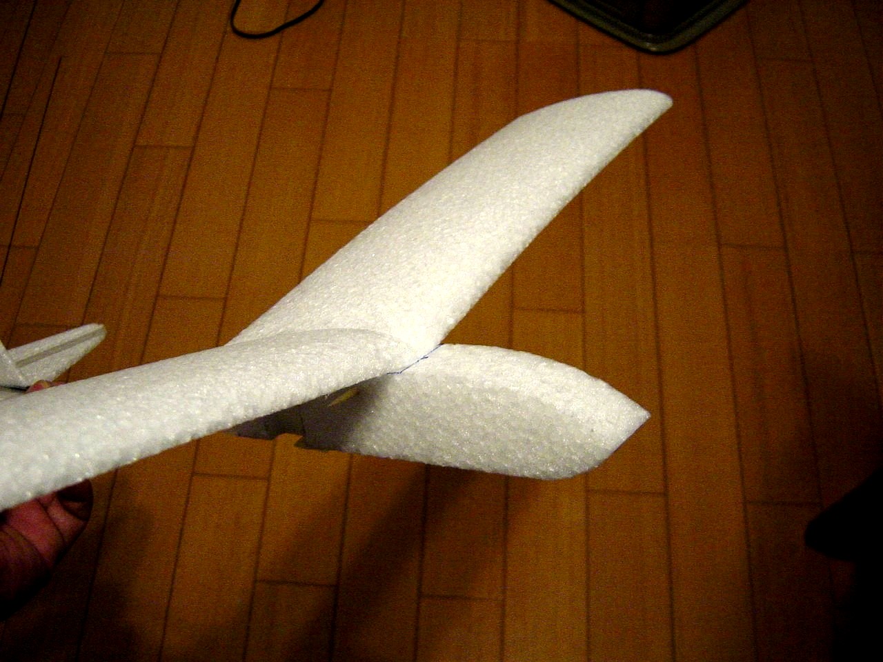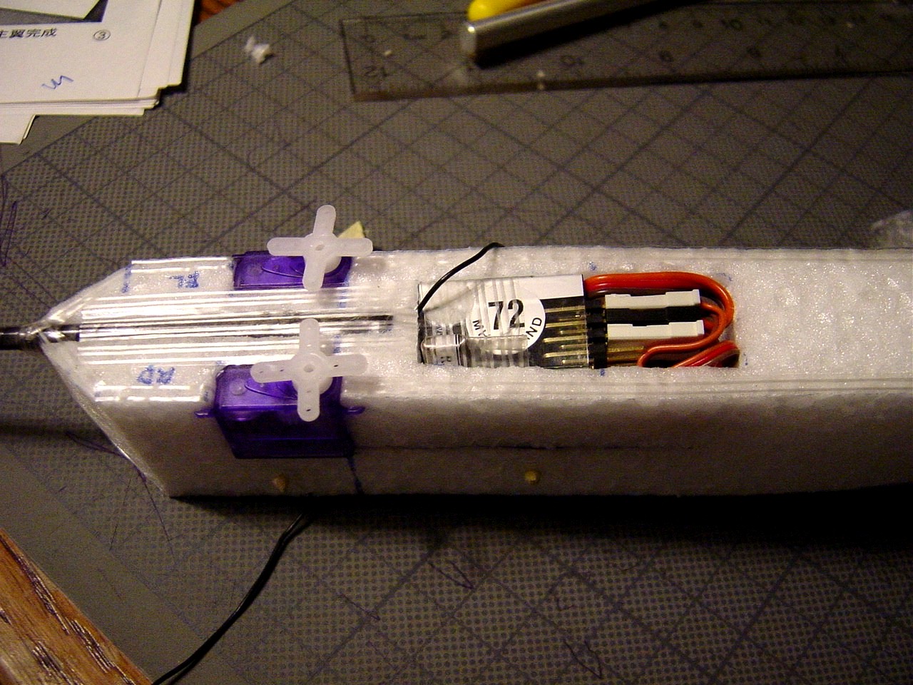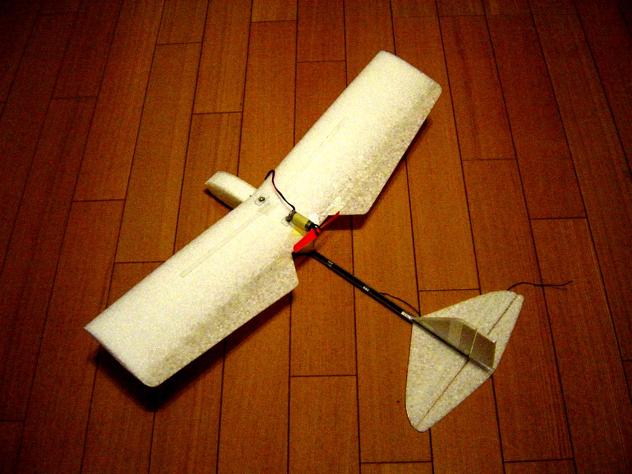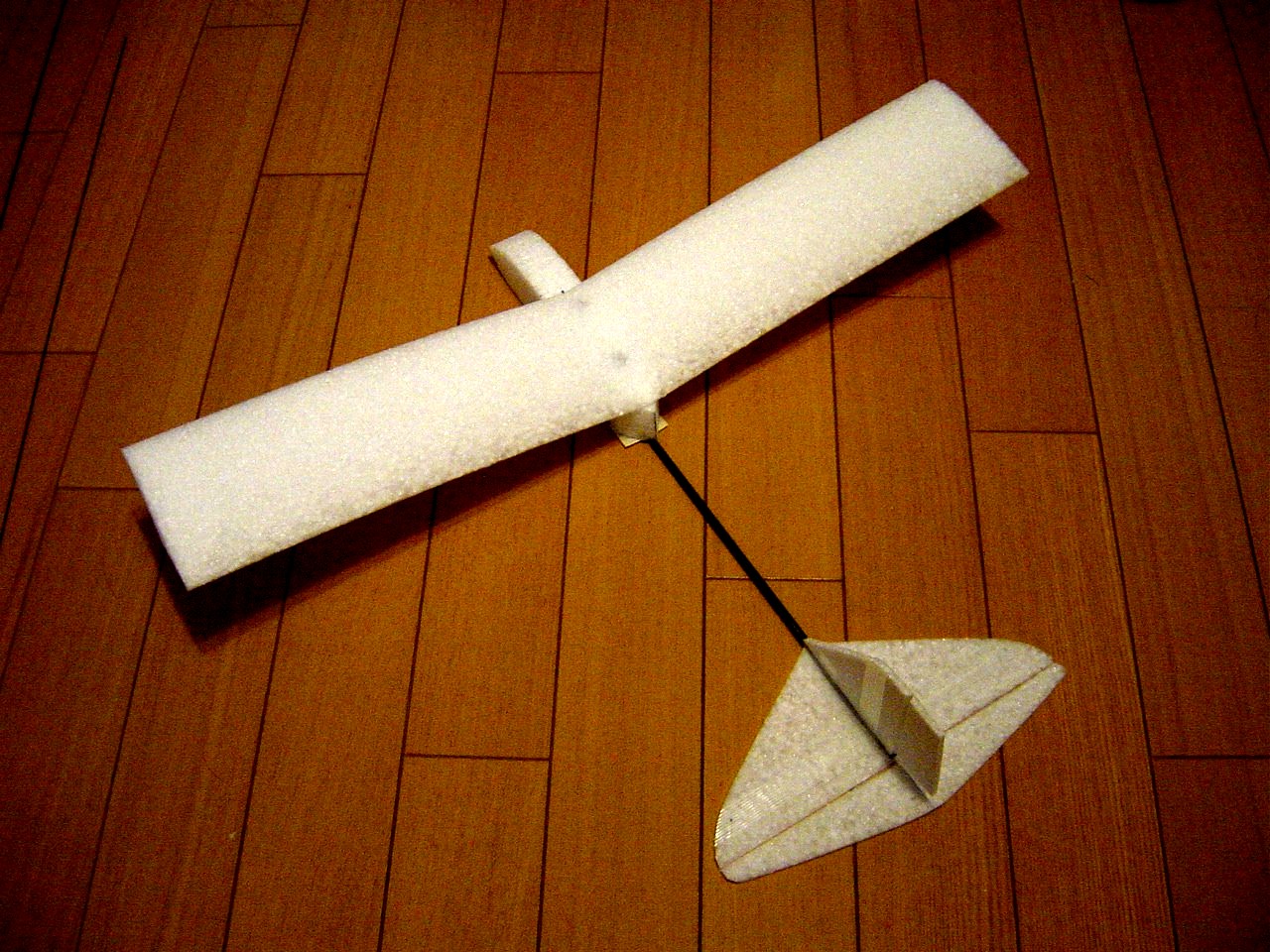 【 完成! (^^)/ 】 製作日数、2日間くらい。主翼の切り出しが一番時間かかったかも(*^_^*) →テスト飛行の様子は、ブログの方に記事があります(^o^) - スペック - □重量: 約93g □翼長: 530mm □全長: 430mm □翼面積: 約6.0dm2 □翼面荷重: 約15.5dm2/g →翼面積と翼面荷重は「RC飛行機実験工房」のホームページで計算しました(^_^)v □バッテリー: ROBIN 2S 310mAh □モーター: GWS 50XC+付属のプロペラ □アンプ: ブラシアンプ10A ※サイズは、オリジナルの約65%位でした。 |